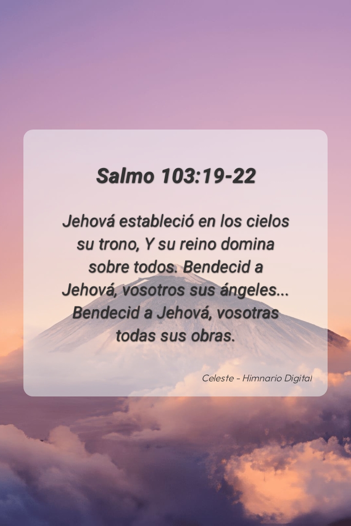 "Jehová estableció en los cielos su trono, Y su reino domina sobre todos. Bendecid a Jehová, vosotros sus ángeles... Bendecid a Jehová, vosotras todas sus obras."