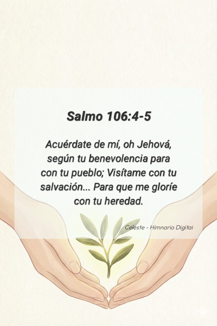 "Acuérdate de mí, oh Jehová, según tu benevolencia para con tu pueblo; Visítame con tu salvación... Para que me gloríe con tu heredad."