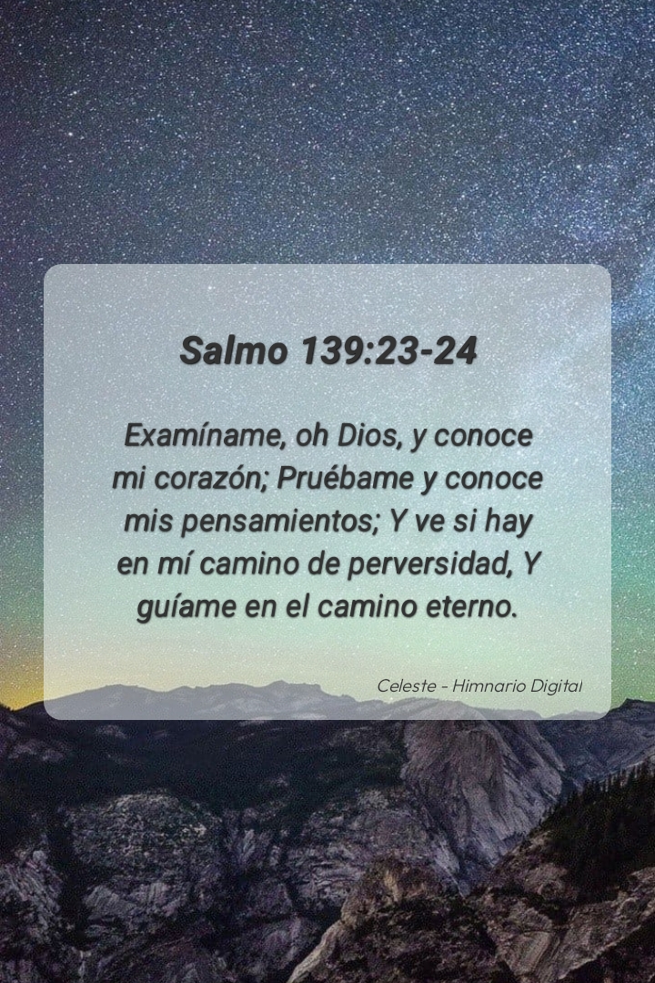 "Examíname, oh Dios, y conoce mi corazón; Pruébame y conoce mis pensamientos; Y ve si hay en mí camino de perversidad, Y guíame en el camino eterno."
