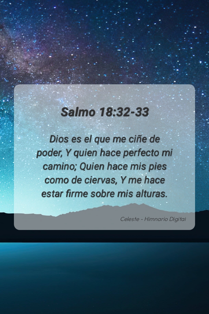 "Dios es el que me ciñe de poder, Y quien hace perfecto mi camino; Quien hace mis pies como de ciervas, Y me hace estar firme sobre mis alturas."