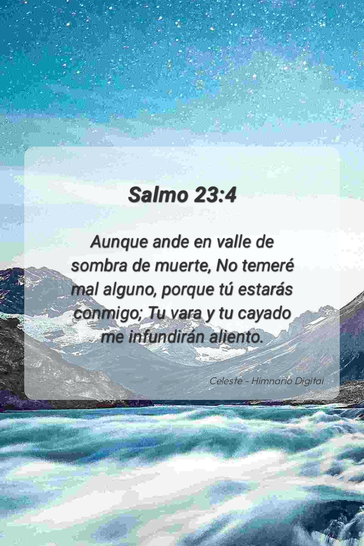 "Aunque ande en valle de sombra de muerte, No temeré mal alguno, porque tú estarás conmigo; Tu vara y tu cayado me infundirán aliento."