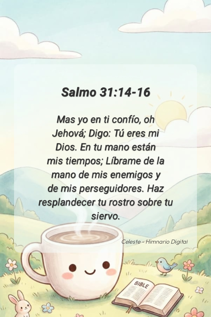 "Mas yo en ti confío, oh Jehová; Digo: Tú eres mi Dios. En tu mano están mis tiempos; Líbrame de la mano de mis enemigos y de mis perseguidores. Haz resplandecer tu rostro sobre tu siervo."