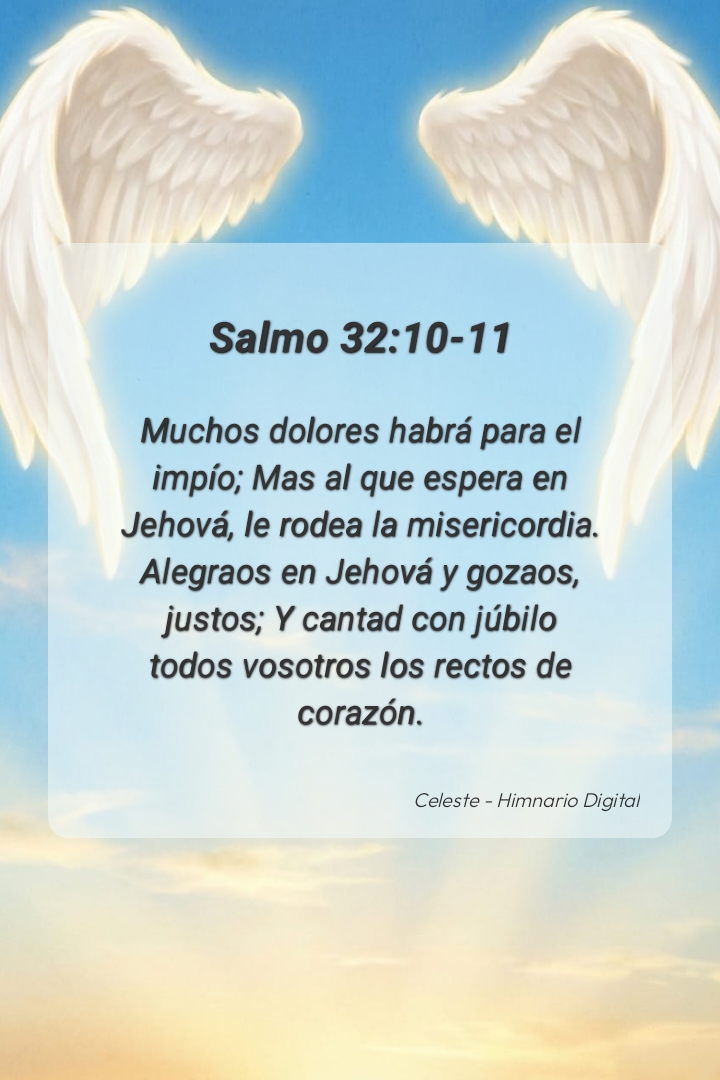 "Muchos dolores habrá para el impío; Mas al que espera en Jehová, le rodea la misericordia. Alegraos en Jehová y gozaos, justos; Y cantad con júbilo todos vosotros los rectos de corazón."