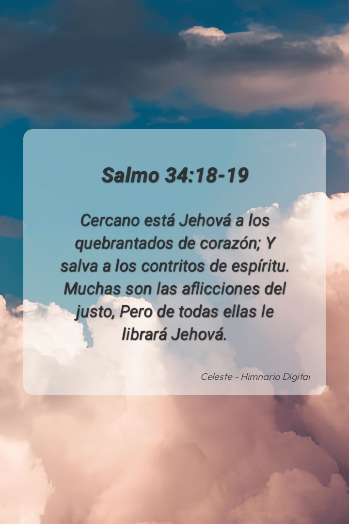 "Cercano está Jehová a los quebrantados de corazón; Y salva a los contritos de espíritu. Muchas son las aflicciones del justo, Pero de todas ellas le librará Jehová."