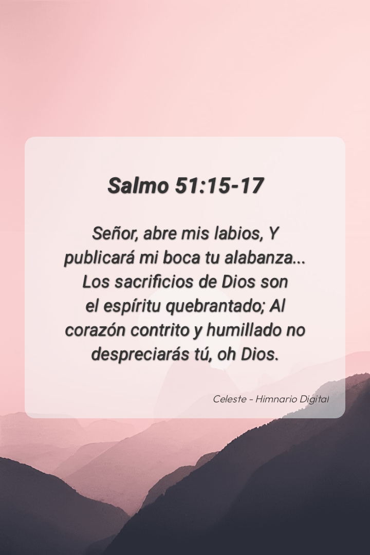 "Señor, abre mis labios, Y publicará mi boca tu alabanza... Los sacrificios de Dios son el espíritu quebrantado; Al corazón contrito y humillado no despreciarás tú, oh Dios."
