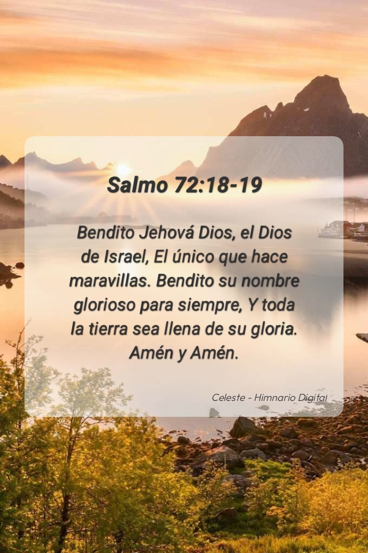 "Bendito Jehová Dios, el Dios de Israel, El único que hace maravillas. Bendito su nombre glorioso para siempre, Y toda la tierra sea llena de su gloria. Amén y Amén."