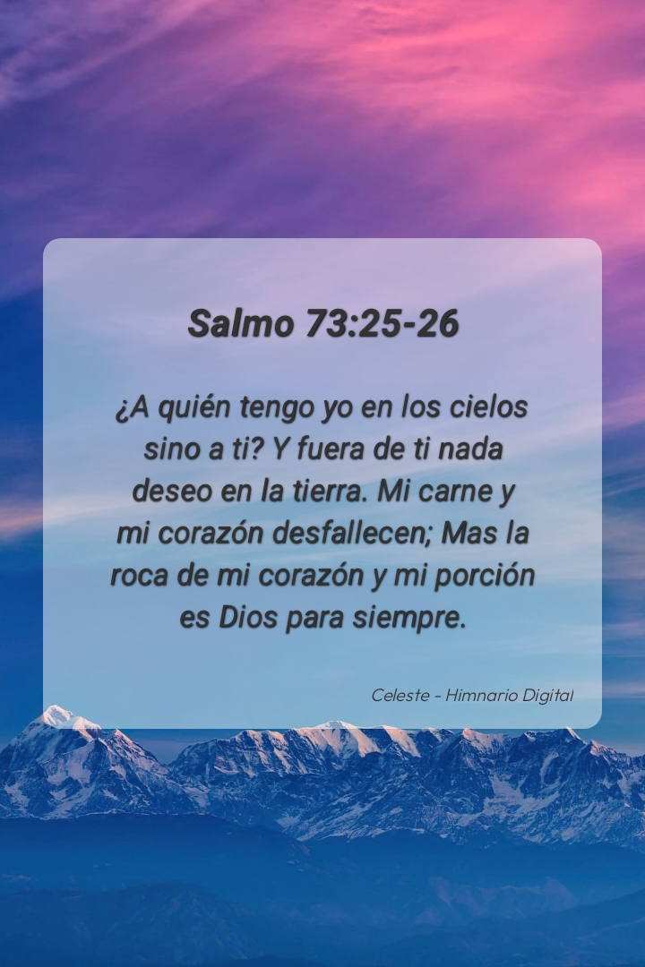 "¿A quién tengo yo en los cielos sino a ti? Y fuera de ti nada deseo en la tierra. Mi carne y mi corazón desfallecen; Mas la roca de mi corazón y mi porción es Dios para siempre."