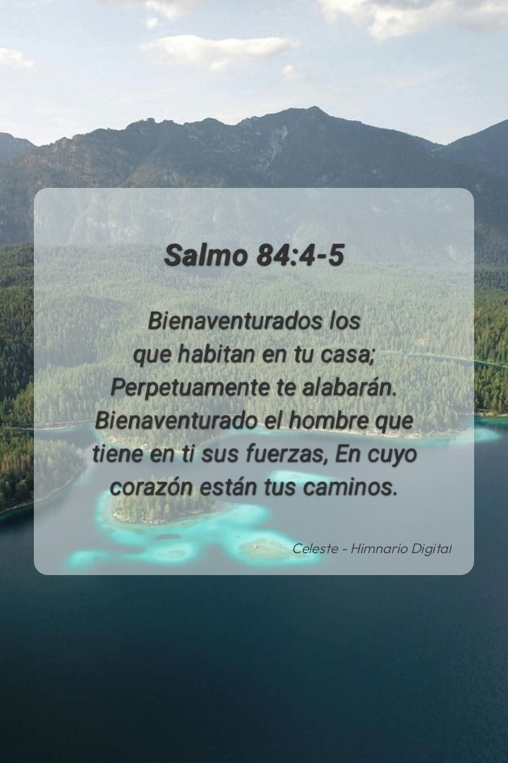 "Bienaventurados los que habitan en tu casa; Perpetuamente te alabarán. Bienaventurado el hombre que tiene en ti sus fuerzas, En cuyo corazón están tus caminos."