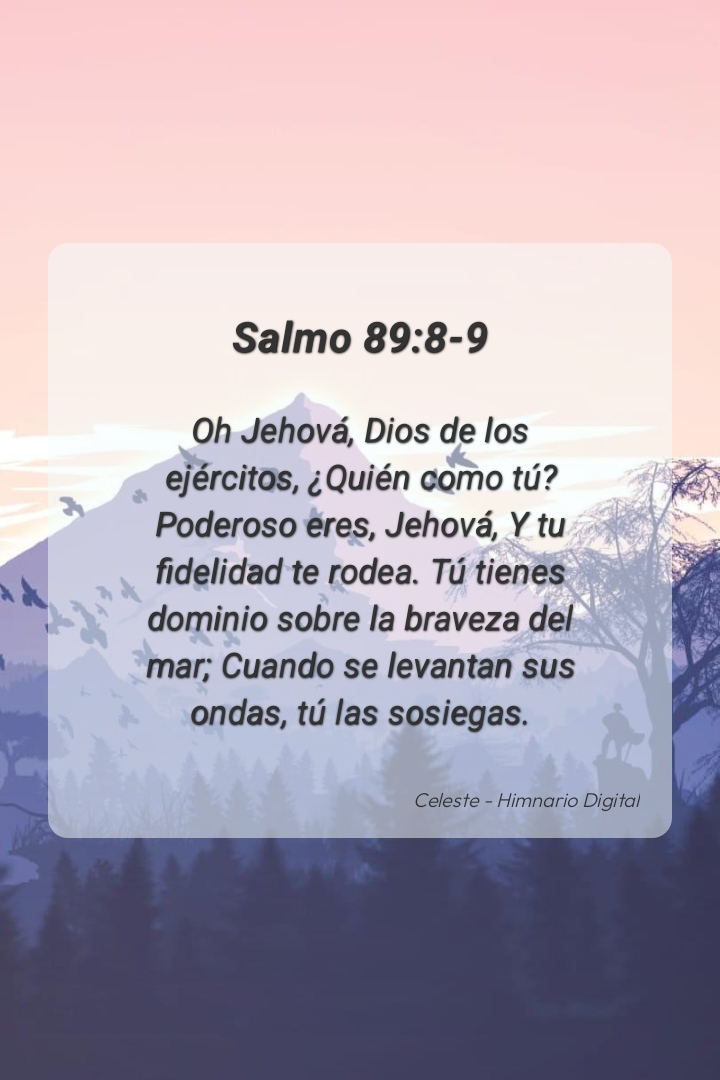 "Oh Jehová, Dios de los ejércitos, ¿Quién como tú? Poderoso eres, Jehová, Y tu fidelidad te rodea. Tú tienes dominio sobre la braveza del mar; Cuando se levantan sus ondas, tú las sosiegas."