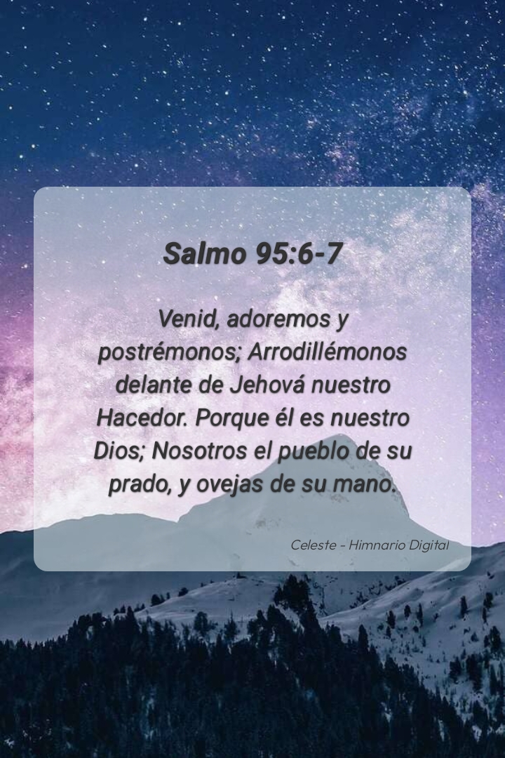 "Venid, adoremos y postrémonos; Arrodillémonos delante de Jehová nuestro Hacedor. Porque él es nuestro Dios; Nosotros el pueblo de su prado, y ovejas de su mano."
